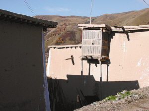 照片上的房子在阿坝县一个叫神座的藏族村子里,外墙上突出的那个小房间就是厕所。这种厕所很简单,就是在地板上锯一个洞。在川西藏区旅行了1000多公里,看到的藏族民居似乎都是这样的结构。一看到这样的厕所,便情不自禁地想到了方便时候的快乐:高屋建瓴,势如破竹。