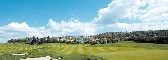 昆明乡村高尔夫俱乐部球道或直冲向上,或跌宕而下,落差最大可达50米。