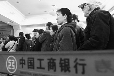 照片:2006年10月27日,辽宁沈阳市民排队在工商银行存储业务。国新摄