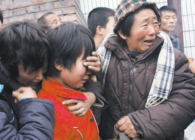 11月27日,芦苇滩煤矿瓦斯爆炸事故遇难者的家属十分悲痛。11月26日18时37分,山西省临汾市尧都区河底乡芦苇滩煤矿发生瓦斯爆炸,被困井下的24名矿工全部遇难。闫锐鹏摄(新华社发)