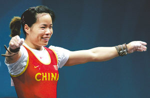 |    今天的举重馆很热闹,中国姑娘陈艳青在58公斤级的比赛中,连破抓举、挺举和总成绩3项世界纪录,让卡塔尔观众着实震撼了一回。    走下赛场,陈艳青一脸轻松,丝毫看不出比赛后的疲惫,“反正冠军是跑不了的,我当时就想打破世界纪录。我在比赛中从来不考虑对手,只考虑自己。”    事实上,陈艳青几乎没有碰到任何对手。泰国的温迪一直排名第二,但她3次抓举的最好成绩只有98公斤,而陈艳青第一把就要了103公斤,远远地超出了对手,第二把她成功抓起108公斤,第三把原计划的109公斤改为111公斤,冲击世界纪录。赛场一下子热闹起来,DJ和现场的观众一起大喊着给她鼓劲。    陈艳青大吼两声,一鼓作气完成动作,打破抓举世界纪录。其后,冲击挺举世界纪录的过程也很顺利,在第二把成功拿下137公斤的成绩后,陈艳青向140公斤的新世界纪录冲击。结果她再次不负众望,稳稳地举起了杠铃。总成绩的世界纪录也随之告破。    在雅典奥运会上,陈艳青的总成绩是232.5公斤,而今天她的总成绩达到了251公斤,整整提高了18.5公斤。她如何在这么短的时间内实现这么大的飞跃呢?    陈艳青坦言,读书提高了她对举重运动的了解,从而使得她在比赛中将技术、心理和很多因素更好地结合了起来,而且比年轻选手更稳定、自信。    中国代表团副团长崔大林也在现场观战,他对陈艳青的表现给予了高度评价:“陈艳青的金牌是迄今为止中国代表团在本届亚运会上含金量最高的一块。”    本报多哈12月3日电    照片:12月3日,中国选手陈艳青在多哈进行的女子举重58公斤级决赛中,创造三项世界纪录,并夺得该级别金牌。国新摄     |