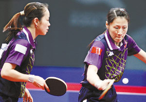 12月6日,陈晴/王楠在女双半决赛中,以2∶4负于中国香港选手帖雅娜(左)/张瑞。小艾摄