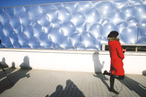 12月7日,外层膜安装已经完成85%以上的国家游泳中心“水立方”工程向中外媒体开放,一名电视记者正准备进行现场报道。当天,北京奥组委、北京市2008奥运工程建设指挥部召开新闻发布会,发言人表示,北京奥运场馆建设总体进度基本正常,所有场馆建设到2007年年底将全部完工。