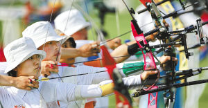 12月9日,亚运会女子射箭60米资格赛。 国新摄
