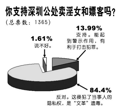 没在深圳生活的人根本就不知道这里的卖淫嫖娼有多猖狂。我所在的村里就有大量的卖淫女,那些理发店,店面不足10平方米,但一到晚上,昏暗的灯光下居然能有30多个年轻女子排坐在门口。难道这就是中国之窗的形象?对于那些屡教不改的人,就算手段有点过激又有什么不可以呢?