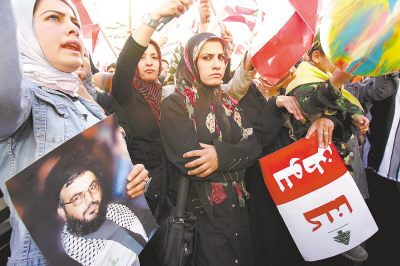 12月10日,一名示威者手持黎巴嫩真主党领导人哈桑·纳斯鲁拉的照片在贝鲁特参加反政府集会。当天,数十万黎巴嫩反对派及其支持者在贝鲁特举行大型集会,要求黎巴嫩现政府下台。这是反对派自本月初开始无限期静坐示威活动以来举行的第二次大规模集会。新华社/法新