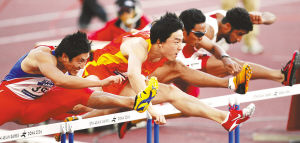 |        “我今天其实没想跑这么快,但比赛时我总感觉身边有个影子在晃动,不得已我只能加快速度,没想到一不小心就打破了亚运会纪录。”刘翔说的“影子”就是他的小师弟史东鹏。今天,刘翔在110米栏的决赛中,以13秒15的成绩打破了他在4年前创造的亚运会纪录,史东鹏也跑出了13秒28的个人最好成绩。    今天,多哈雨后的天气有一丝阴冷,看台上的观众依然稀稀拉拉,只有在110米终点处的看台上坐着几百人的中国助威团。“今天,我们中国驻卡塔尔使馆的全体员工都来了。大使也在看台上。”一位使馆工作人员说,“其他观众来自中建集团,我们都想一睹刘翔的风采。”    在刘翔冲过终点后,中国驻卡塔尔使馆的工作人员递过来一面国旗,刘翔和史东鹏披在身上绕场一周,答谢观众。“我们这几天准备了很多国旗,谁夺冠,我们就给谁送过去。”这位使馆工作人员说。    绕场一周后,刘翔走到了混合采访区,上百名中国记者早就等候在那里。刘翔坦言,今天赢得一点儿也不轻松,他拼尽了全力。“我们原来的计划是:我在前面领跑,史东鹏在后面追,这样他的成绩能有所提高,按计划我不能超过他太多,因为史东鹏很可能因为追不上而自乱阵脚。所以,我在跑的时候还要动点心思。没想到,史东鹏今天的状态这么好,在他的压力之下,我不得不加快步伐了。”刘翔解释说。    史东鹏感谢刘翔的帮助:“这是我个人的最好成绩。我和刘翔绕场一周的时候,他也一直在恭贺我。其实,他今天的任务就是拿金牌,然后再帮我提高一下成绩。他今天做得非常完美。”    赛场外,刘翔的教练孙海平也被另一批中国记者围住,他也没想到刘翔能跑这么快,“我们原计划是跑13秒20左右,我也没想到他们提高了成绩。现在是冬训末期,能跑出这个成绩已经非常出色了”。    孙海平认为,刘翔是在史东鹏的“压力”下才有这么好的表现:“史东鹏给刘翔的压力太大了,要不然没有这个成绩。这个项目就在你追我赶中,才能得到提高。当初刘翔能打破世界纪录,就是因为身边有个阿诺德,要不是阿诺德跑出12秒90,刘翔也很难跑出12秒88的世界纪录。”    不过,孙海平认为,刘翔要想再破世界纪录会很难:“每个项目都是有极限的。我认为,如果一切顺利的话,刘翔还能将世界纪录提高0.03秒。”本报多哈12月12日    照片:12月12日,中国选手刘翔(左二)以13秒15的成绩夺得亚运会田径男子110米栏冠军,并打破亚运会纪录。另一名中国选手史东鹏获得银牌。新华社记者王丽莉摄     |