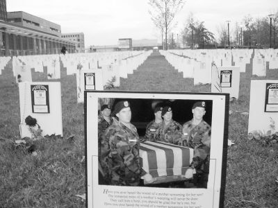 照片:费城独立宫前的伊战美军亡灵。伊战目前的困境使人们把批评的矛头都指向了拉姆斯菲尔德。林东摄