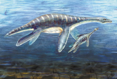 美国科学基金会2006年12月13日发布的这一画像显示了一头成年蛇颈龙和一头幼年蛇颈龙。美国和阿根廷的科研机构11日宣布,来自这两个国家的科学家在南极洲发现了一具蛇颈龙化石。这是迄今发现的最完整的蛇颈龙化石之一。新华社/法新