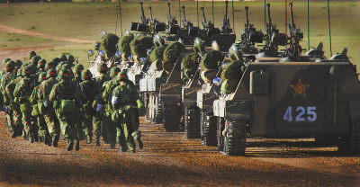 9月14日,机械化步兵旅反击战斗在北京军区某合同战术训练基地打响。“红”、“蓝”双方通过进攻与防御作战、激光对抗等课目,探讨了优化作战力量编成、缩短战斗力生成周期等课题。演习导演部着重对机械化步兵旅“指挥控制、远程机动、火力打击、整体防护、综合保障”5种能力进行了全面检验和综合评估考核。
