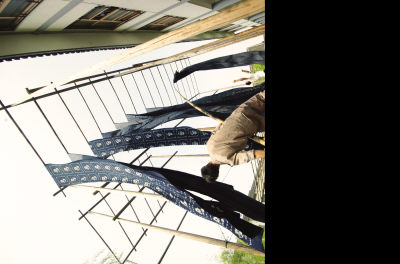 300多年前,那个不知名的民间工匠,对着阳光抖落一地黄豆粉,星星点点的白凝固在了纯纯的蓝布之上,他窃喜的可能只是有了谋生之本。300年后的今天,我走进桐乡石门镇的丰同裕染坊,这个由丰子恺大师的祖父遗存下来的百年老作坊,蓝印花布的神奇仍然闪烁着民间的力量。