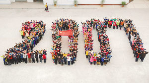 12月31日,安徽合肥郊区大杨镇小学和合肥安庆路第三小学的近400名学生,排列成“2007”字样,迎接新年的到来。 吕维摄