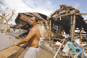 照片 2006年12月5日,在菲律宾阿尔拜省的一个村庄,灾民在整理被台风毁坏的房屋。 新华社发