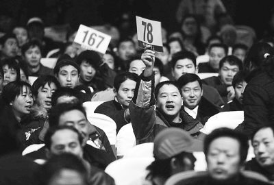 当日,北京第24届龙潭庙会摊位拍卖会在崇文区工人文化宫举行。首日拍出200个摊位,最高价摊位拍出5万多元。新华社发陆欣摄