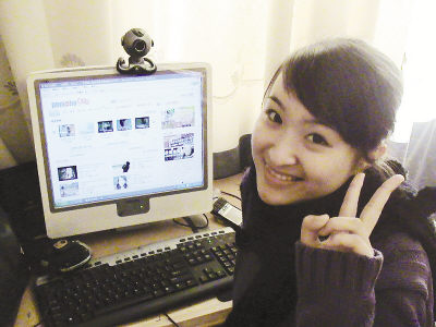 照片:孙盛坐在电脑前表示,对视频网站“美女主播”这份兼职很开心。邓晓松摄