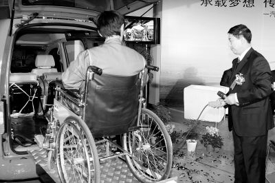 |        1月5日,在一汽大众北京海联力通4S店的展厅内,举行了一场特殊的交车仪式。因患有肌无力症导致无法站立、活动的北京客户郭骏伟验收了属于自己的改装开迪轿车。    今年15岁的郭骏伟从小遭遇了诸多不幸,从4岁开始就不能行走,外出只能依靠父母抱着、背着。然而,更大的不幸是,小骏伟的父亲两年前被诊断患有尿毒症,并随后接受了换肾手术。从那时起,出门成了小骏伟的奢望,妈妈的肩膀成了他唯一可以行动的支柱。小骏伟最大的心愿就是能够像一个正常的孩子那样坐在车里和爸爸、妈妈外出郊游。获知他的心愿后,小骏伟的爷爷决定拿出全部退休金来实现他的愿望。    经过认真挑选之后,空间足够大,能够连轮椅带人推入车内的开迪轿车得到了小骏伟一家人的青睐。然而,接下来的难题是,做过换肾手术的爸爸没有力气把体重达75公斤的小骏伟通过斜坡推上车,而小骏伟坐在车内的轮椅上更不可能靠两只把手稳定自己的身体。车辆必须进行改装,但现有的技术很难实现。一汽大众销售公司和海联力通4S店在获悉了小骏伟的故事后,不仅优惠了车价,还迅速组织技术人员,专门设计了改装方案,在最短的时间内改装好一辆能够通过电控,帮助行动不便的人自由上下车的开迪轿车。    当天的交车仪式上,一汽大众销售公司副总经理孙宏宇亲手将车钥匙交到小骏伟家人的手里。他说:“小骏伟这样的家庭情况在我们国家可能并不多见,但有个现象值得我们思考,就是我们国家有多少行动不便的人需要这样一款经过特殊改装的开迪车?一汽大众要真正从用户需求的角度出发,生产切合他们需要的车,改善他们的生活品质,圆他们一个汽车梦。”     |