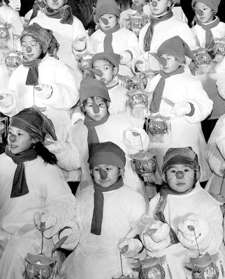 1月10日,沈阳棋盘山冰雪大世界,一群可爱的学生扮作雪娃娃手提灯笼迎接八方来客。当日,2007中国沈阳国际冰雪节在这里盛装开幕。金昆摄