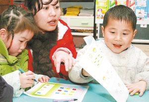 1月23日,苏州市一名优秀幼儿教师在艺海民工子女幼儿园为民工孩子义务上课。一项旨在提高民工子女幼儿园教育水平的“支教计划”,将定期、分批在苏州城乡各所民工子女幼儿园陆续实施。