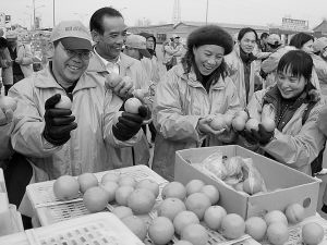 1月25日,广东省德庆县300位农民乘坐两架包机到北京旅游并考察水果批发市场。德庆县6万多农户中现有4万多户种植贡柑、砂糖桔,去年销售总收入8亿多元,仅此一项,全县农民人均收入可达2500余元。