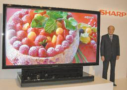 图为夏普公司在东京一家酒店内展示108英寸液晶显示屏黑板。(胡连荣)