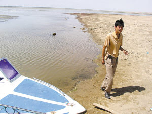 ▲民勤县红崖山水库曾经一度因上游来水偏少,水位急剧下降,用于旅游的船只纷纷搁浅。