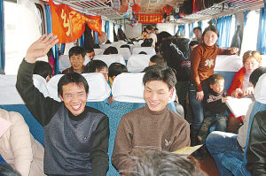 ▲2月3日,在宁波火车站,外来务工人员坐在开往安徽阜阳的专列上。当日,由浙江省总工会牵头组织的三趟“实名制民工专列”分别从杭州、宁波、温州三市出发,送3800余名外来务工人员返乡过年。专列采取实名、身份证登记买票制,确保每一张车票落实到外来务工者手上,防止出现利用专列倒票现象。新华社记者