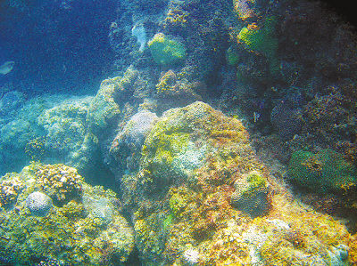 图:三亚附近海域海底不完整的珊瑚礁。新华社记者王雷摄