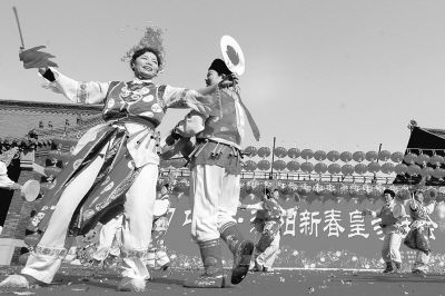2月10日,演员在沈阳皇寺庙会上表演满族风俗歌舞。当日是农历腊月二十三,俗称“小年”,沈阳举行新春皇寺庙会,庆祝佳节。新华社记者李钢摄