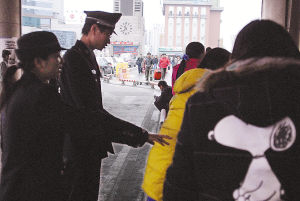 1月31日,一位“红马甲”悄悄地对正在杭州火车站广场值勤的派出所民警说:“那边旅馆门口蹲着的那个白裤子,好像在倒票呢!”民警上前一查,“白裤子”身上果然有一张杭州到重庆的火车票。在派出所,“白裤子”一脸无奈地说,“我已经很小心了,躲到了车站外面,刚倒了一张票,就给你们抓了”。