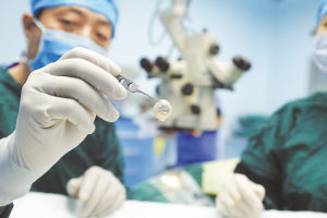 2月27日,北京同仁医院,医生正准备用斯里兰卡总统拉贾帕克萨向中国捐赠的眼角膜,为患者做移植手术。2月25日,这两枚眼角膜在斯里兰卡眼科捐献协会会长席尔瓦女士的护送下,空运到北京。今年是中斯建交50周年。目前正在访华的拉贾帕克萨总统共向中方赠送了3件礼物,另外两件是佛像和亚洲象。