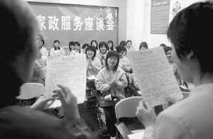 |        2月24日,春节后首批30名大学生保姆抵达深圳,仅半天时间就被雇主一“抢”而空,这也是今年深圳保姆市场首次大批量引进大学生保姆。    据了解,这批大学生保姆都是来自中华女子学院山东分院的学生。在大学学习期间,她们学习了家务管理、家庭社会工作、营养与烹饪、儿童心理与家庭教育、家庭护理与保健、沟通技巧、社交礼仪、文秘、英语等多学科知识和技能,可胜任“家庭管理者”的角色,也兼做家务。    单增辉摄     |