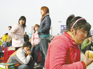 曾在上海打工的小李今年却加入了南下的大军。25日深夜,小李和她一般年龄的六七十个同乡从县城赶来,3人睡一张床,在车站边的小旅馆凑合了一夜,26日一早买到了去东莞的车票。这是小李第三年出门打工,她曾在上海的制衣厂、天津的电子厂呆过,这次回来过年听人说,东莞条件不错,就和妹妹、表妹一起决定南下。虽然还不知道去哪里工作,但是有带工领着,小李不发愁找不到活儿,反而担心路上18个小时没座儿怎么熬。小李说,其实家里的条件挺好,出来打工是因为初中毕业后在阜阳一直找不到工作,“我的初中同学除了留下来上学的,都出门打工了。”去年在上海,小李每月工资1000多元,除去四五百元的开销,她盘算着应该能攒些钱带回家,“但是不知怎么就没了”,小李晃着4只新潮的耳环笑了。