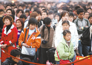 26日这一天,由阜阳始发的21趟列车中,上海方向就占了9列,共送走旅客2.6万多人。吴琼夫妇抱着不满周岁的孩子裹在奔向上海的人流中,开始了他们第五年的打工生活。之所以带着孩子出门,“因为家里所有人都出来打工了,兄弟姐妹和60多岁的父母都走了。”他们分散在上海、杭州、宁波等不同城市,做保安的、当保姆、服务员的,在厂子里工作的都有。一直给私人老板打工的夫妻俩去年弄了个水果摊,“收入比在家强多了”。说起为什么选择上海,“主要是条件好吧。我妹妹以前在广东的电子厂,一周只能休息半天,现在几乎每周都有双休日,一家人有时间聚聚。”吴琼的爱人笑着接话道:“打工的要赚钱,也要像城里人讲的,注重生活质量”。根据安徽省劳动保障部门提供的信息,从去年开始,去珠江三角地区务工的人员呈回落趋势,而到上海、杭州方向的务工人员却在上升。