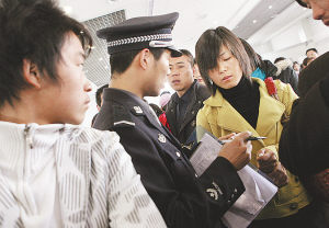 听说今年火车票不涨价,孙乐才决定坐火车回温州,没想到一大早出来,一整天都没买到票,下午3点多,眼看去温州的车就要到了,4个人只能隔着栏杆干着急。不能再等了,嘴甜的孙乐瞅准了广场上一个面善的民警,“让我们进去再补票吧,没座也没关系,再挤再累也行,只要让我们上去”。磨了很久,民警终于把大家带到了候车区。“我这不算违规吧?”年轻民警不好意思地笑笑,“坦诚道,我们都希望旅客能买到票,坐上车,但春运期间,的确有些特殊情况,我们只能尽力。”为了保障票源,蚌埠铁路公安处加强了客票调查,通过向旅客询问,发现线索,追查捣毁票贩。大年初二起,蚌埠铁路公安处派出“蓝盾”小分队85名警力在阜阳围歼票贩。