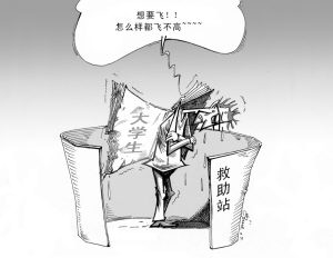 外出打工遭遇抢劫、找工作未果没钱回家、会见网友被欺骗、返乡途中钱包被偷——种种原因使一些刚毕业的大学生频频“投奔”救助站。 漫画:徐简