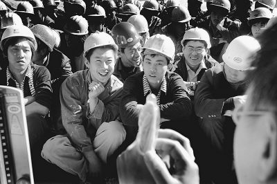 照片:2005年10月24日,清华大学工地。来自安徽巢湖的民工通过人口计划生育课堂,了解生殖健康方面的知识。潘松刚摄