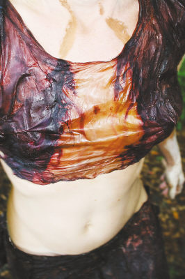 这种衣服必须时刻保持潮湿,否则很容易裂开。李航供图
