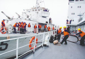 近年来,在一次次大规模演练中,这个支队的作战支援对象不断扩展,实现了从驱逐舰、护卫舰首次延伸到潜艇、导弹快艇、扫雷舰,基本实现了从单舰补给到多舰补给,从油水补给到弹药补给,从一般海况到复杂海况,从近海港口到远洋伴随支援的历史性跨越。