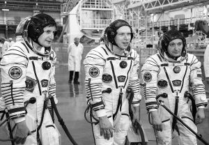美籍匈牙利裔亿万富翁、软件开发师查尔斯·希莫尼(左),近日与两名俄罗斯宇航员在哈萨克斯坦的拜科努尔卫星发射基地接受训练。按照计划,希莫尼将乘坐“联盟TMA-10”宇宙飞船从拜科努尔发射场升空,成为第5位太空游客。 新华社/法新