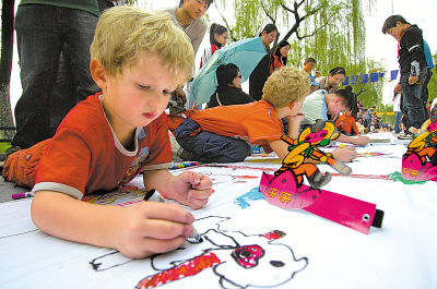 3月31日上午,第三届中国国际动漫节倒计时30天暨“动漫小精灵”少儿百米长卷绘画活动在杭州西湖白堤举行。200余名小画家一起创作动漫百米长卷,迎接第三届中国国际动漫节的到来。这些小画家均从杭州市4至14周岁的爱好绘画的少年儿童中选拔出。朱引炜摄