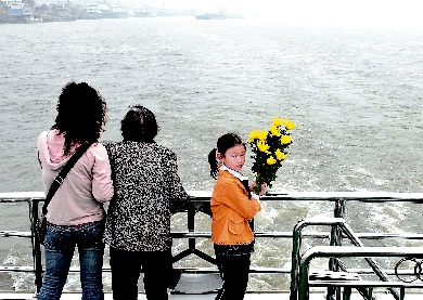 3月31日,武汉苗家码头,“汉阳门号”豪华游轮载着一家人,开始了武汉轮渡“水上祭祀”的首航。当天,武汉市轮渡公司共开通了四班这样的祭祀船。据了解,该市有相当数量的家庭,将已故亲人的骨灰撒到长江里,实行“水上安葬”。轮渡公司开辟专线,方便了市民“水上祭祀”。