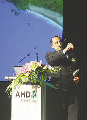 “‘巴塞罗纳’(Barcelona)处理器是业界第一个真正的四核处理器。我们不是把两个双核处理器简单地加在一起。它包括了降低功耗等一系列技术创新。”上周三,在AMD公司(超威半导体)创新技术趋势大会上,该公司的高层技术经理约翰·弗吕赫说。