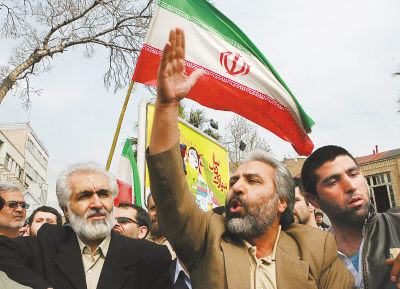 4月1日,在伊朗首都德黑兰的英国驻伊大使馆前,伊朗民众在示威游行。当日,大约200名伊朗学生在英国驻伊朗大使馆外举行示威,抗议15名英国海军人员“非法进入”伊朗水域。