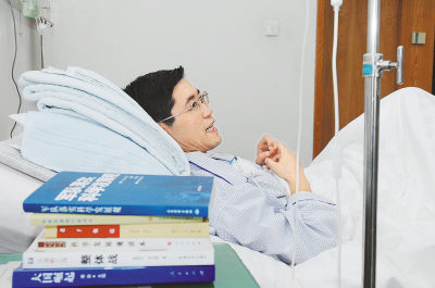 ▲方永刚酷爱各种理论书籍,躺在病床上他枕边也不忘放上一堆。