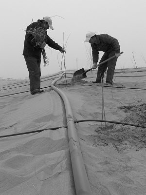 新疆:沙尘暴中治沙忙