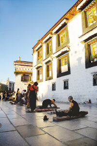 ▲大昭寺门前永远有叩长头的人