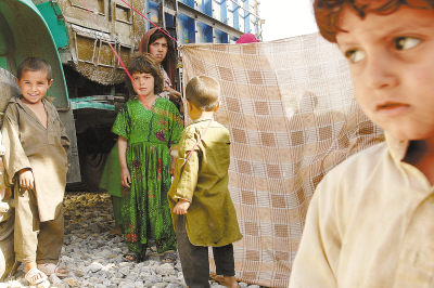 4月14日,在联合国难民事务高级专员公署设在阿富汗首都喀布尔的一个难民营,阿富汗儿童好奇地面对摄影师的镜头。难民事务高级专员公署最近支持巴基斯坦政府在全国范围内对滞留的阿富汗人进行普查。据估计,目前大约210万阿富汗人生活在巴基斯坦,91.5万人生活在伊朗。今年将有25万阿富汗人从这两个国家返回故土。新华社/法新