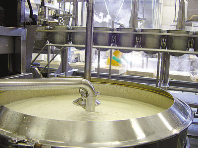 与手工作坊不同,顶好豆腐厂生产豆腐的过程完全由电脑进行控制,这样可以保证每个批次生产的豆腐温度等指标都是一样的。该厂一天生产4000公斤豆制品,不添加任何添加剂,采用巴氏消毒灭菌的鲜豆腐可保质30天,而用真空包装的豆腐则可保存60天。