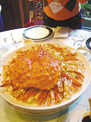 麒麟餐馆里肉质鲜嫩、个头硕大的霸王蟹。本报记者陈为民摄