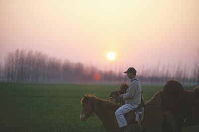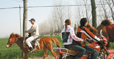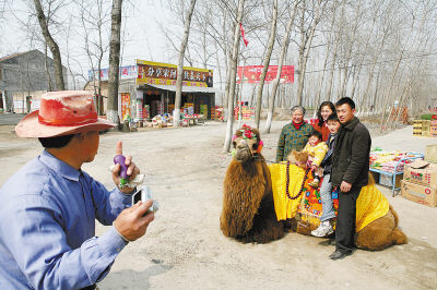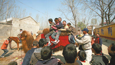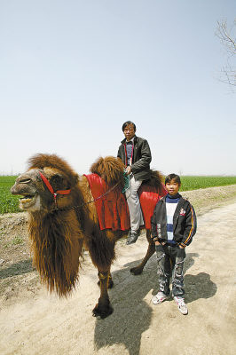 小川马和骆驼已习惯了中原地区的生活。每天随卢胜利在村庄间穿梭。他们见村就进,见人就停,与人合影。